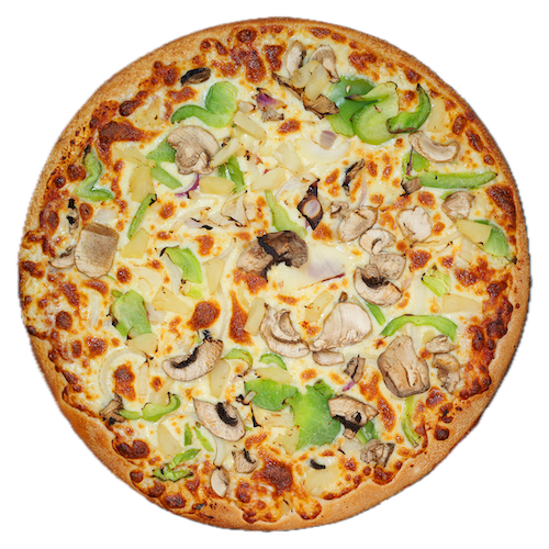 Onion, capsicum, mushrooms, pineapple and mozzarella cheese, all on our herb-infused tomato sauce base