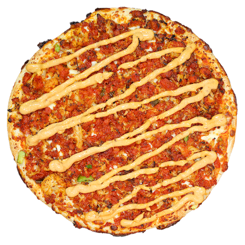 Crispy cauliflower in our spicy, tangy Manchurian-style sauce with spinach, red onion, capsicum and mozzarella on a herb tomato base, finished with peri peri