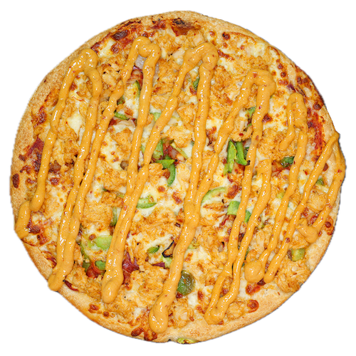 Chicken in our creamy butter-style tomato sauce with spinach, red onion, capsicum and mozzarella on a herb tomato base, topped with ranch