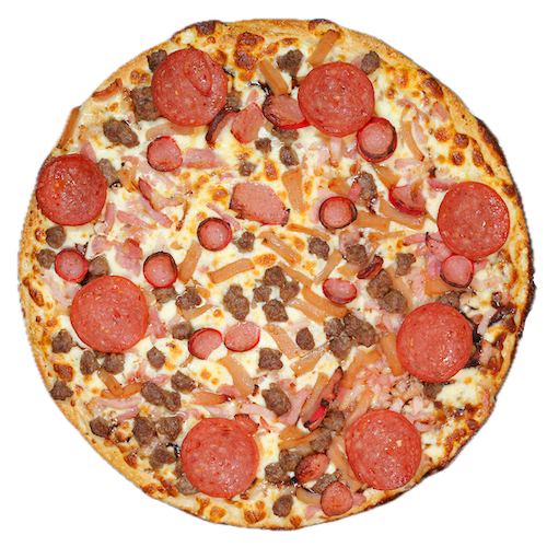Pepperoni, Italian sausage, beef, ham, bacon and mozzarella on our BBQ base