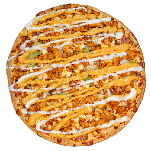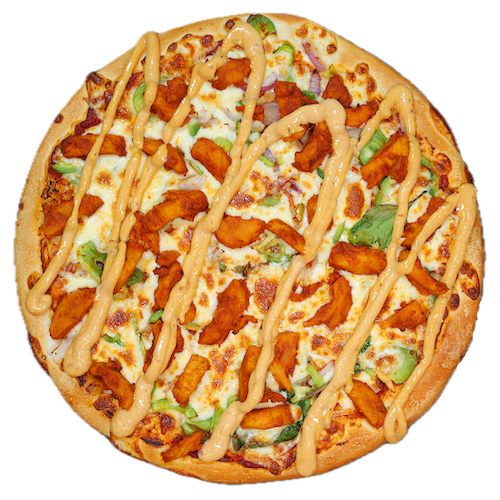 Chicken in our in-house tandoori paste with spinach, red onion, capsicum and mozzarella on a herb tomato base, topped with peri peri and ranch